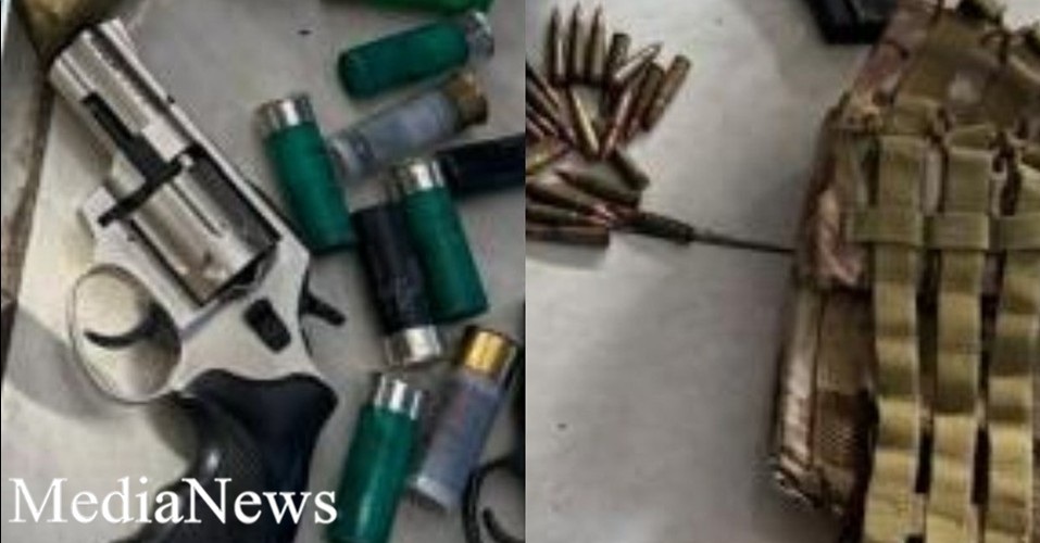 36-ամյա տղամարդու տնօրինած՝ Երևանյան փողոցի հասցեներից մեկում գտնվող սննդի կետում կատարված խուզարկությամբ հայտնաբերվել են երկու ողորկափող հրացան, 3 ատրճանակ, տարբեր զենքերի և տարբեր տրամաչափի 56 փամփուշտ, զրահաբաճկոններ և ինքնաձիգի փամփշտատուփ։