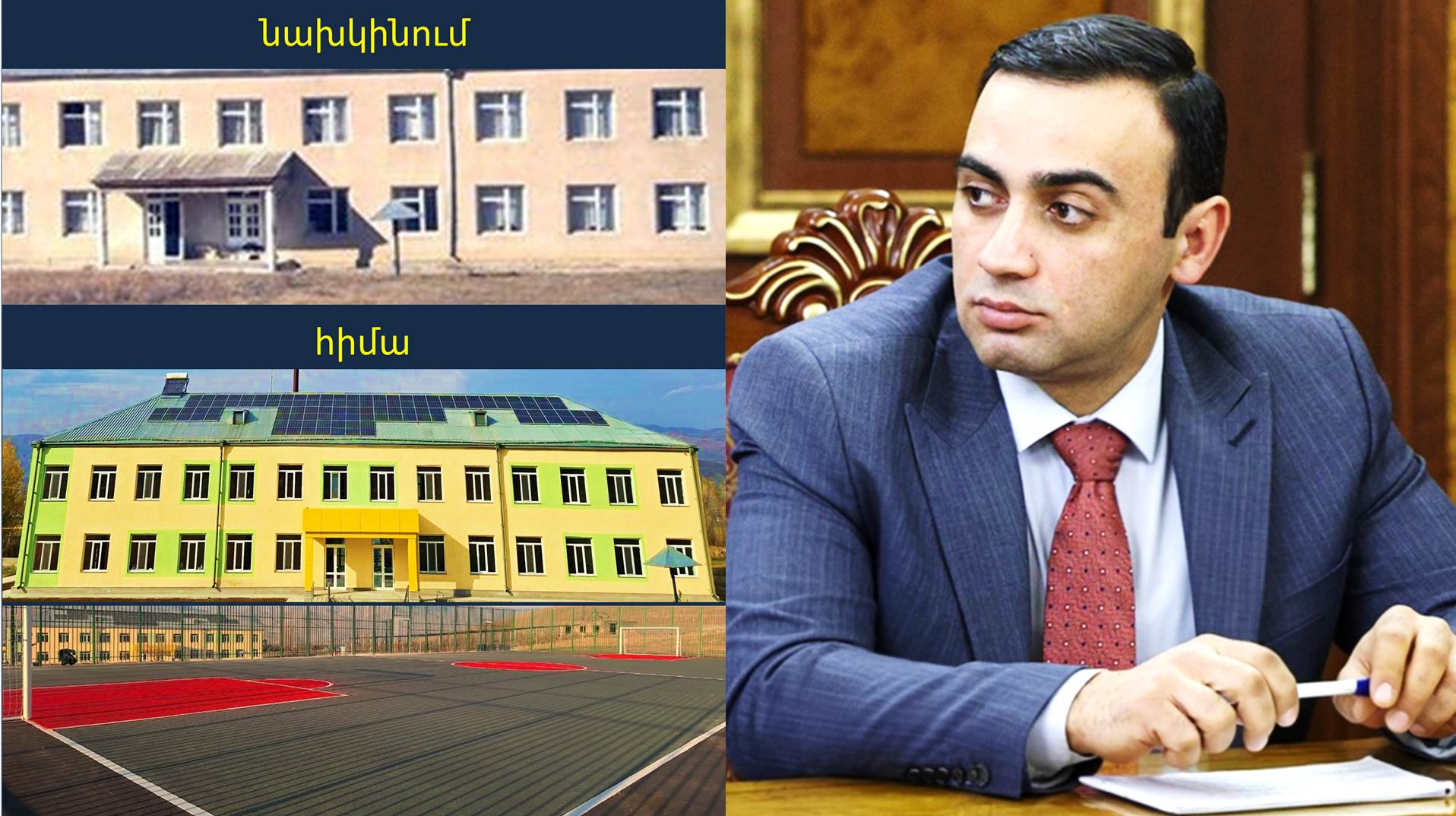 ՀՀ վարչապետի աշխատակազմի ղեկավարի տեղակալ Տարոն Չախոյանը «Ֆեյսբուք»-ի իր էջում լուսանկարներ է հրապարակել Կաթնաջուր գյուղի դպրոցի նախկին ու ներկա տեսքից՝ գրելով.