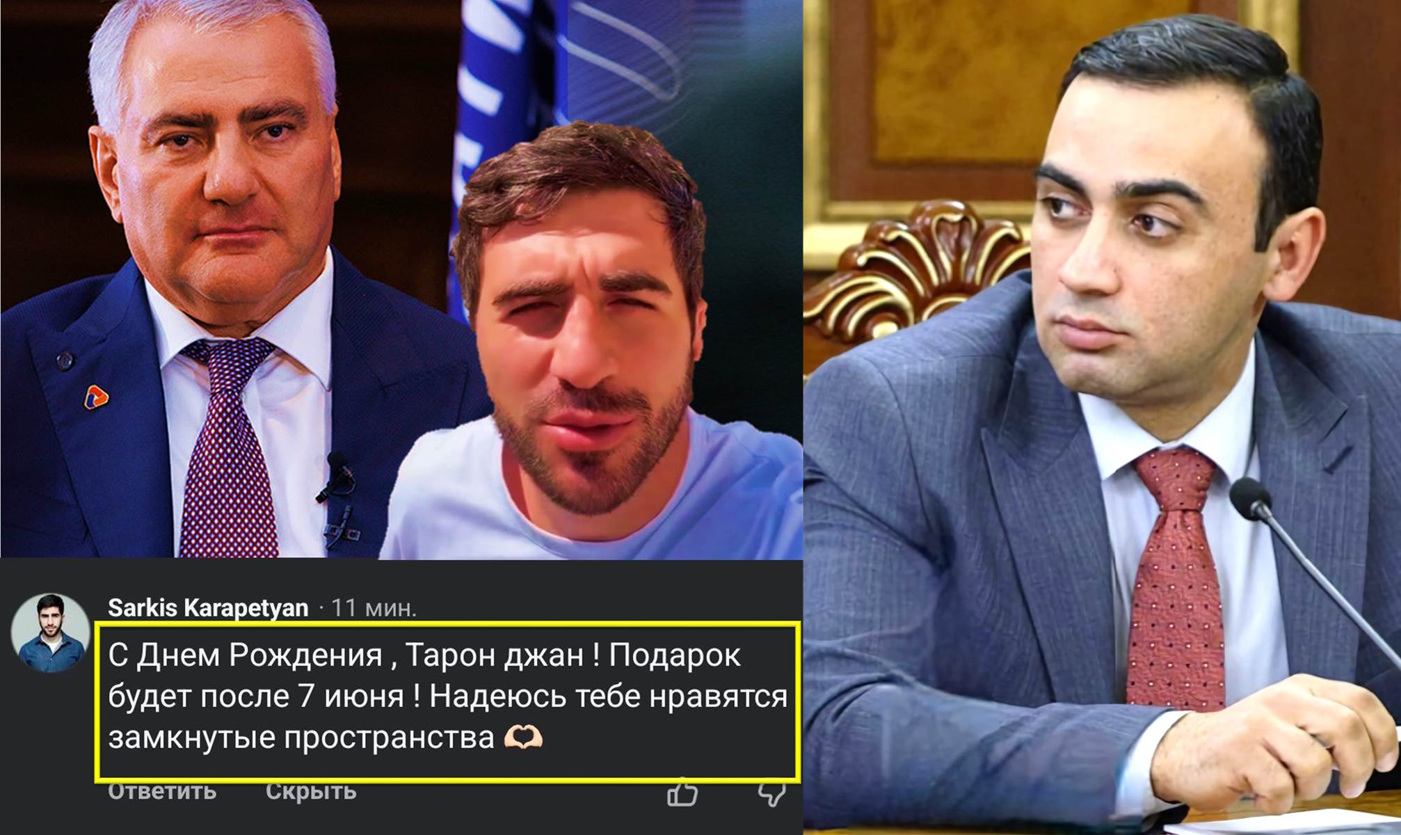 Վարչապետի աշխատակազմից Տարոն Չախոյանն իր ֆեյսբուքյան էջում գրառոմ է արել՝ անդրադառնալով Տաշիր Սամոյի որդու՝ Սարգիս Կարապետյանի սպառնալիքներին։