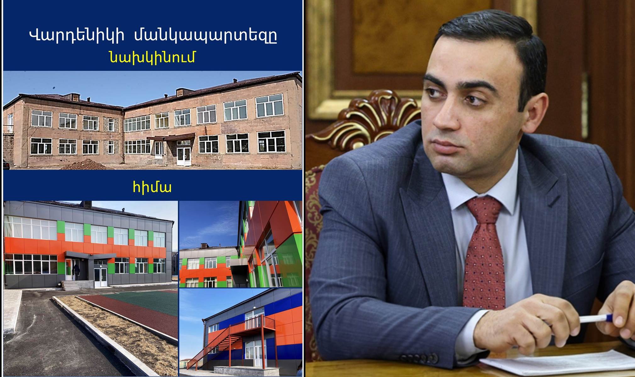 Վարչապետի աշխատակազմից Տարոն Չախոյանն իր ֆեյսբուքյան էջում լուսանկար է հրապարակել՝ հայտնելով, որ Վարդենիկ մանկապարտեզն ամբողջությամբ հիմնանորոգվել է․