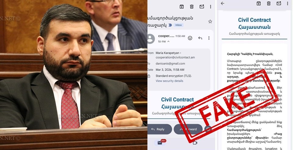 Հարգելի քաղաքացիներ, մեդիայի և ՀԿ հարգելի ներկայացուցիչներ, վերջին օրերին դեռևս անհայտ խաբեբաներ «Քաղաքացիական պայմանագիր» կուսակցության դոմեյնին շատ նման civilcontact.am (իրականը՝ civilcontRact.am) դոմեյնով էլ.փոստ են բացել ու Կուսակցության և պատգամավոր Մարիա Կարապետյանի անունից նամակներ են ուղարկում տարբեր անձանց, որոնց վերջնանպատակը, որքան հասկանում ենք՝ տվյալների ֆիշինգն է։