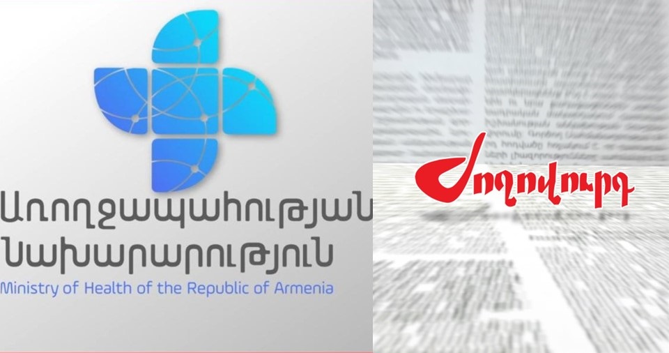 Առողջապահության նախարարությունը հայտնում է, որ «Ժողովուրդ» օրաթերթի այսօրվա համարում հրապարակված հոդվածը, թե «Մինչև հունիս 2.9 մլրդ.-ի գաղտնի վերաբաշխում է արվել. առողջապահության գումարների վերաբերյալ նոր որոշում կա» վերտառությամբ հոդվածը մանիպուլացնող է, քանի որ հանրությանն է ներկայացվում իբրև գաղտնի կամ ուշագրավ որոշում: