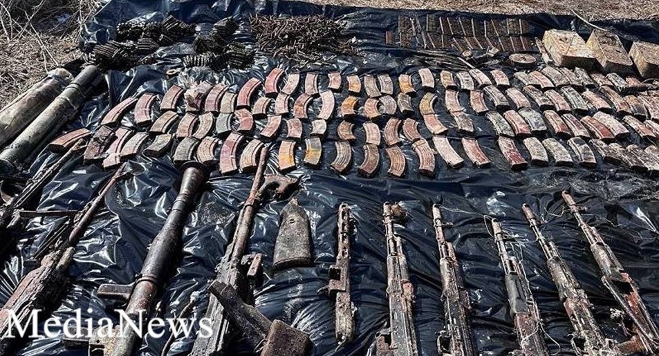 Նույն օրը նախաձեռնված քրեական վարույթի շրջանակներում Արցախի 4 նրբ․ 4/3 հասցեի դիմաց գտնվող կիսակառույց շինության դիմացի հատվածում կատարված զննությամբ հայտնաբերվել են 15 հատ ինքնաձիգ, 1 հատ ինքնաշեն ինքնաձիգ, 6 հատ մարտական ատրճանակ, 1 հատ գնդացիր (ԱԳՍ), 7 հատ ինքնաձիգի պահեստատուփ, 3 հատ նռնակ և 510 հատ տարբեր տրամաչափերի փամփուշտներ։