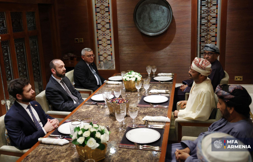 Հայաստանի և Օմանի ԱԳ նախարարներ Արարատ Միրզոյանի ու Բադր բին Համադ բին Համուդ Ալ-Բուսաիդինի քննարկումները շարունակվել են աշխատանքային ընթրիքի ձևաչափով: