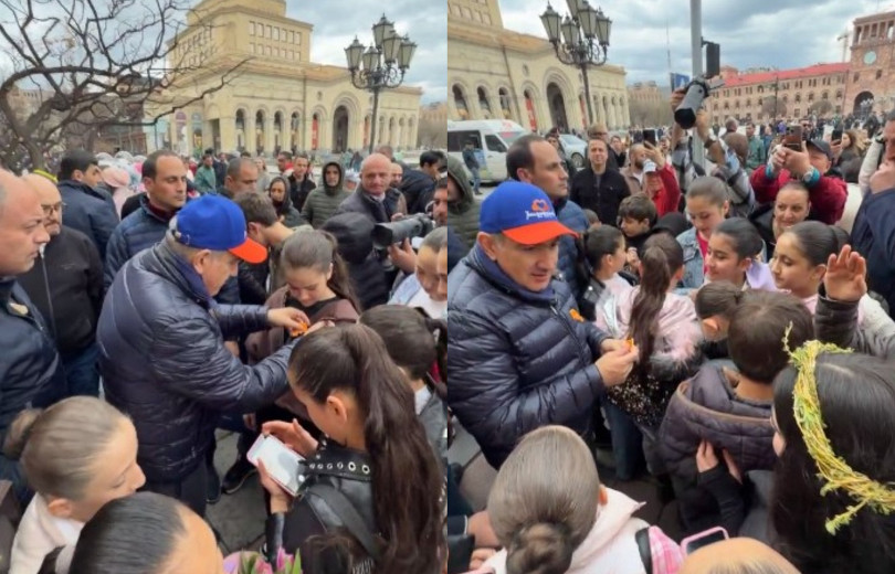 Վարչապետն իրական Հայաստանի քարտեզների մակետներն է նվիրել մի խումբ երեխաների ու անցորդների, իր ձեռքերով փակցրել դրանք հագուստներին, լուսանկարվել քաղաքացիների հետ:
