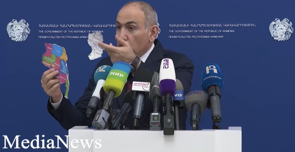 Հարցից հետո վարչապետ Նիկոլ Փաշինյանը վերցրեց լրագրողի բերած քարտեզը և պարզաբանեց. «Ձեր ցույց տված քարտեզի վրա այս մի կտորը գույն չունի (ցույց տվեց ԼՂ-ի մասը-խմբ.), ընդհանրապես գույն չունի: