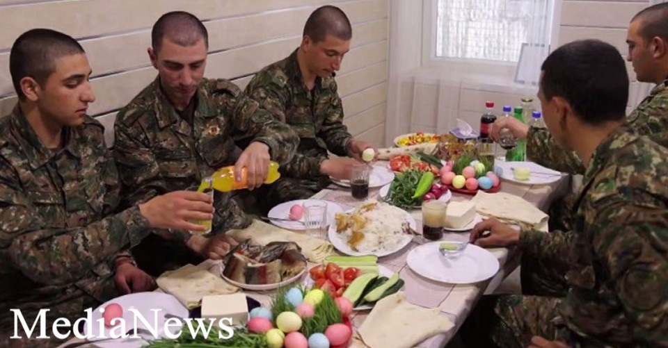 ՀՀ պաշտպանության նախարարությունը հրապարակել է տեսանյութ՝ ցույց տալով Սուրբ Զատկի տոնի նախապատրաստական աշխատանքները ՊՆ զորամասերում ու բանակային դիրքերի տղաների համար:
