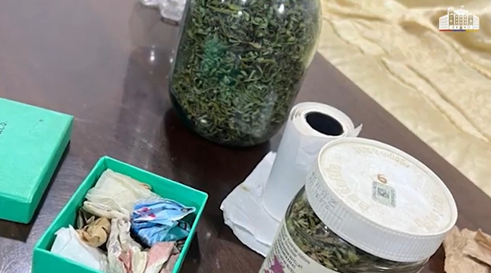 Մարտի 16-ին, դատարանի որոշմամբ, նրա բնակության վայրում կատարված խուզարկությամբ հայտնաբերվեցին մարիխուանայի նմանվող զանգվածներով ապակյա տարաներ և թղթե փաթեթներ՝ ընդհանուր 270 գ քաշով։ Բացի այդ, հայտնաբերվեցին կանեփի սերմեր, կաթուցիչներ և նռնակ։ Տանտերը հայտնեց, որ նռնակը գտել է, իսկ թմրանյութն ինքն է պատրաստել անձնական օգտագործման համար։