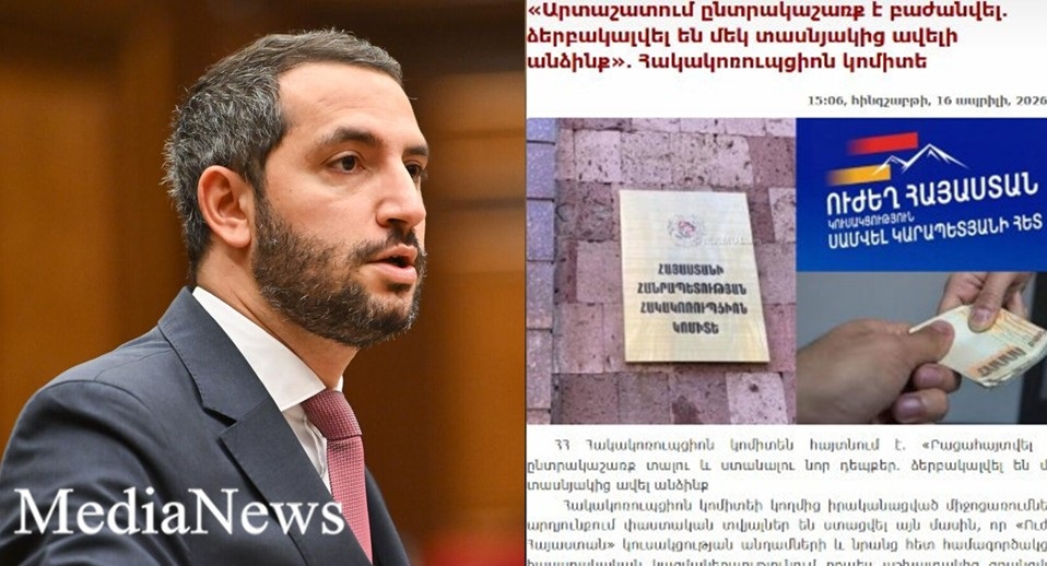 Անդրադառնալով «Ուժեղ Հայաստան» կուսակցության անդամների ձերբակալումների վերաբեյալ Հակակոռուպցիոն կոմիտեի հաղորդագրությանը, մասնավորապես ասում է․ «Կալուգացի հյուրախաղիստներին թվում է, որ իրենք իրենց Նիժնի Տապռից պետք ա գան, մեր ժողովրդին թուլափայ տան, հետո վիրավորեն ու գողանան մեր ընտրություննե՞րը։ Գլուխները պատով են տվել։
