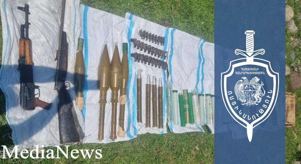 Քրեական ոստիկանները նշված վայրում հայտնաբերել են «ԱԿ» տեսակի ինքնաձիգ, «ՏՕԶ» տեսակի ակոսափող հրացան, նռնականետի 8 արկ, նռնականետի արկի 17 լիցքավորիչ և տարբեր տրամաչափի 1655 փամփուշտ։