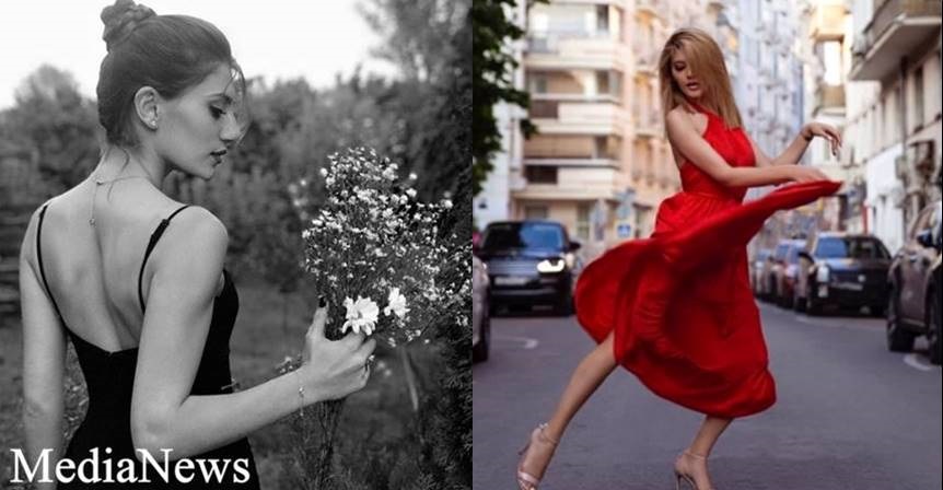 Դերսանուհին լուսանկարը տեղադրել է Facebook-յան էջում. նա շքեղ կարմիր զգեստ է կրում, որը համադրել է բարձրակրունկ կոշիկների հետ։