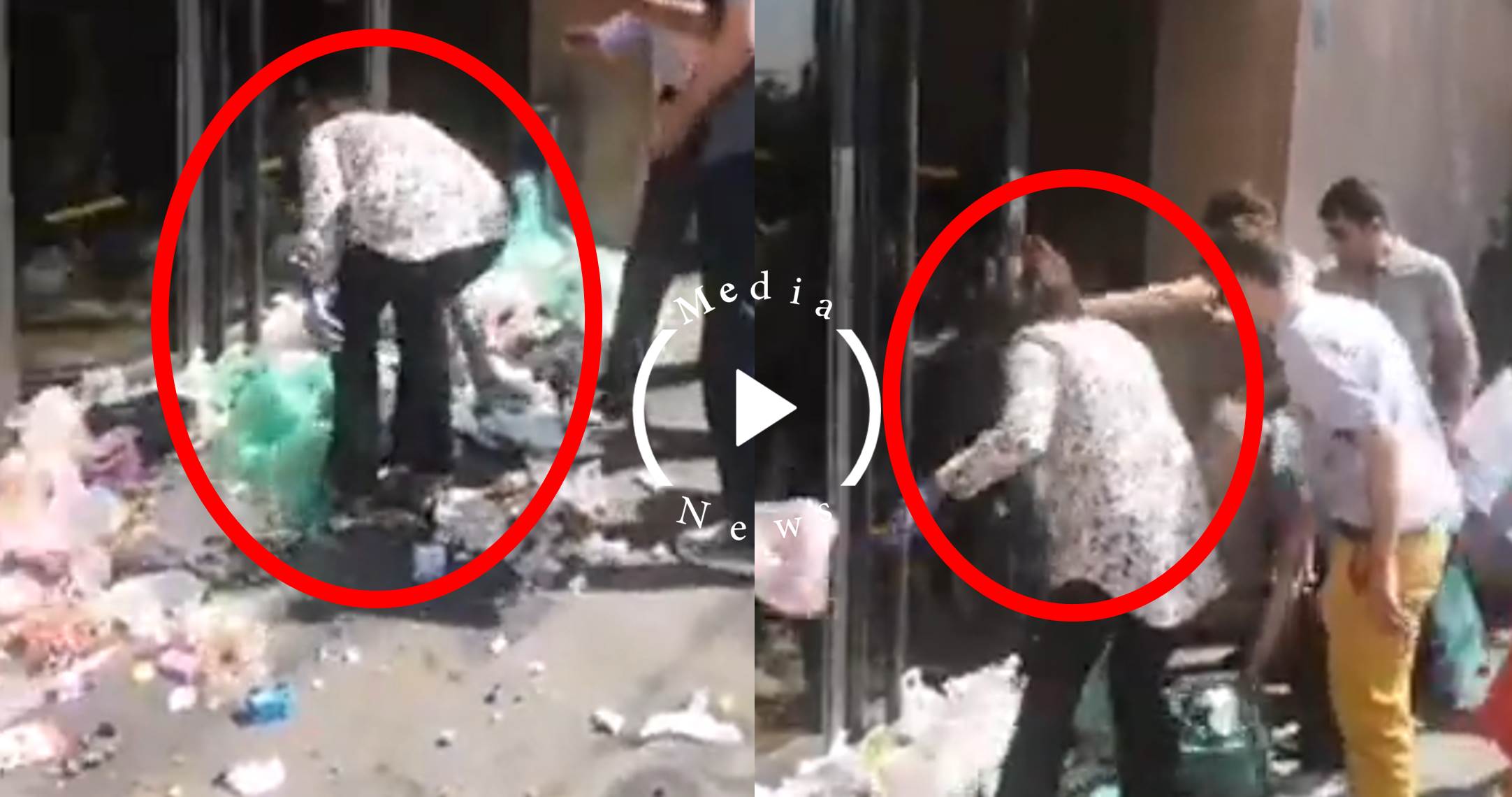 Քաղաքացիներն աղբի տոպրակներ են նետում շենքի մուտքի մոտ՝ պատկան մարմինների ուշադրությունը հրավիրելով քաղաքի առջև ծառացած խնդրի վրա։