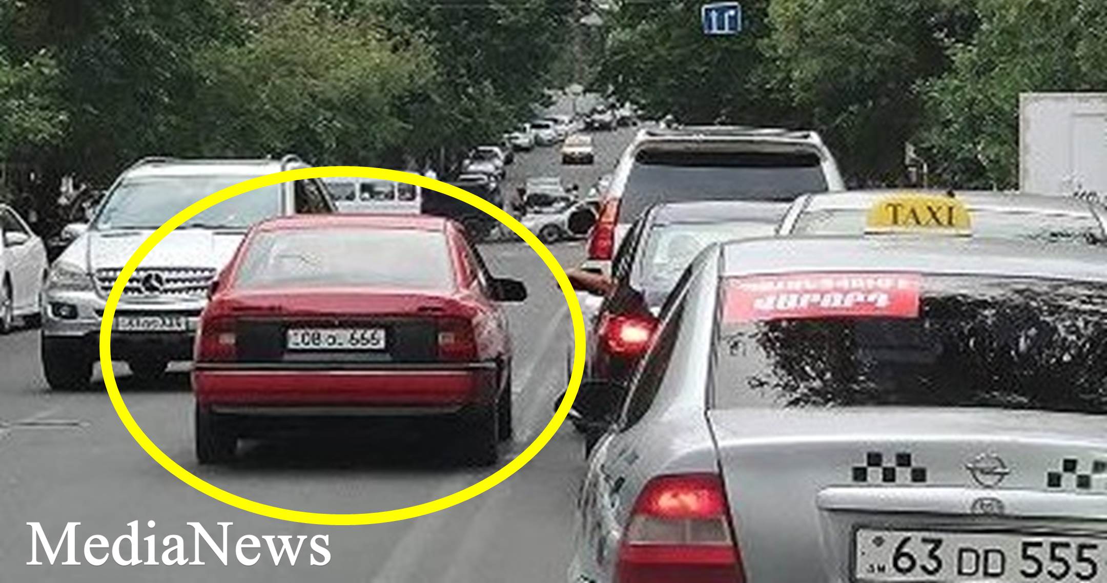Հրապարակած լուսանկարում երեւում է, թե ինչպես է «Օպել» մակնիշի ավտոմեքենան խախտում կատարում եւ հանդիպակաց վարում ավտոմեքենան: