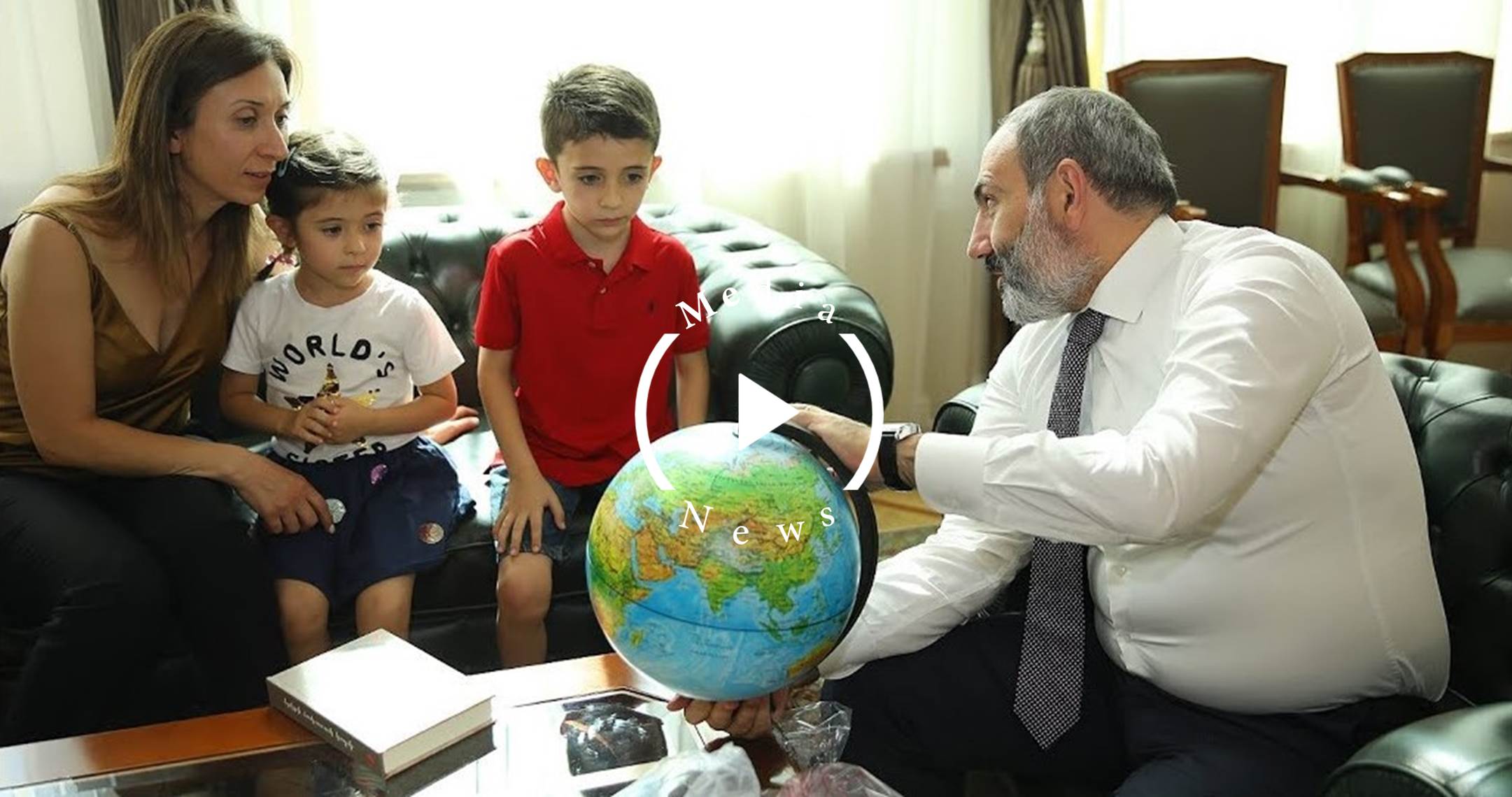 Նիկոլ Փաշինյանը զրուցել է փոքրիկների հետ, ցույց տվել իր աշխատասենյակը, լուսանկարվել նրանց հետ, նվիրել հայերեն տառերով գլոբուս, գրիչ և գլխարկ: