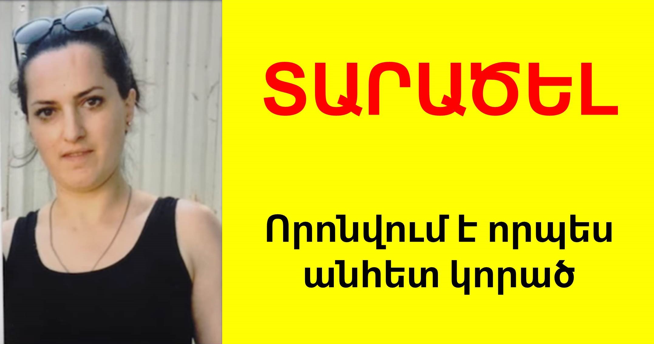 38-ամյա կնոջ գտնվելու վայրի մասին տեղեկություն ունեցողներին ոստիկանությունը խնդրում է զանգահարել կամ հայտնել ոստիկանության մոտակա բաժին: