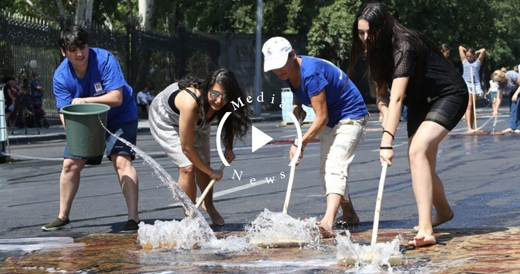 Բաղրամյանի պողոտայում այսօր` հուլիսի 28-ին, Վարդավառի տոնի կապակցությամբ պատգամավորները գորգեր են լվանում: