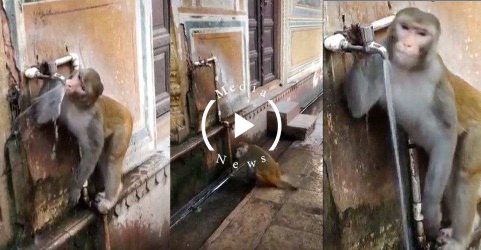 Տեսանյութում երևում է, թե ինչպես է կապիկը բարձրանում քարի գագաթին՝ քաղաքային ծորակի մոտ: Կենդանին ջուր է խմում, այնուհետև պտտելով փակում ծորակը: