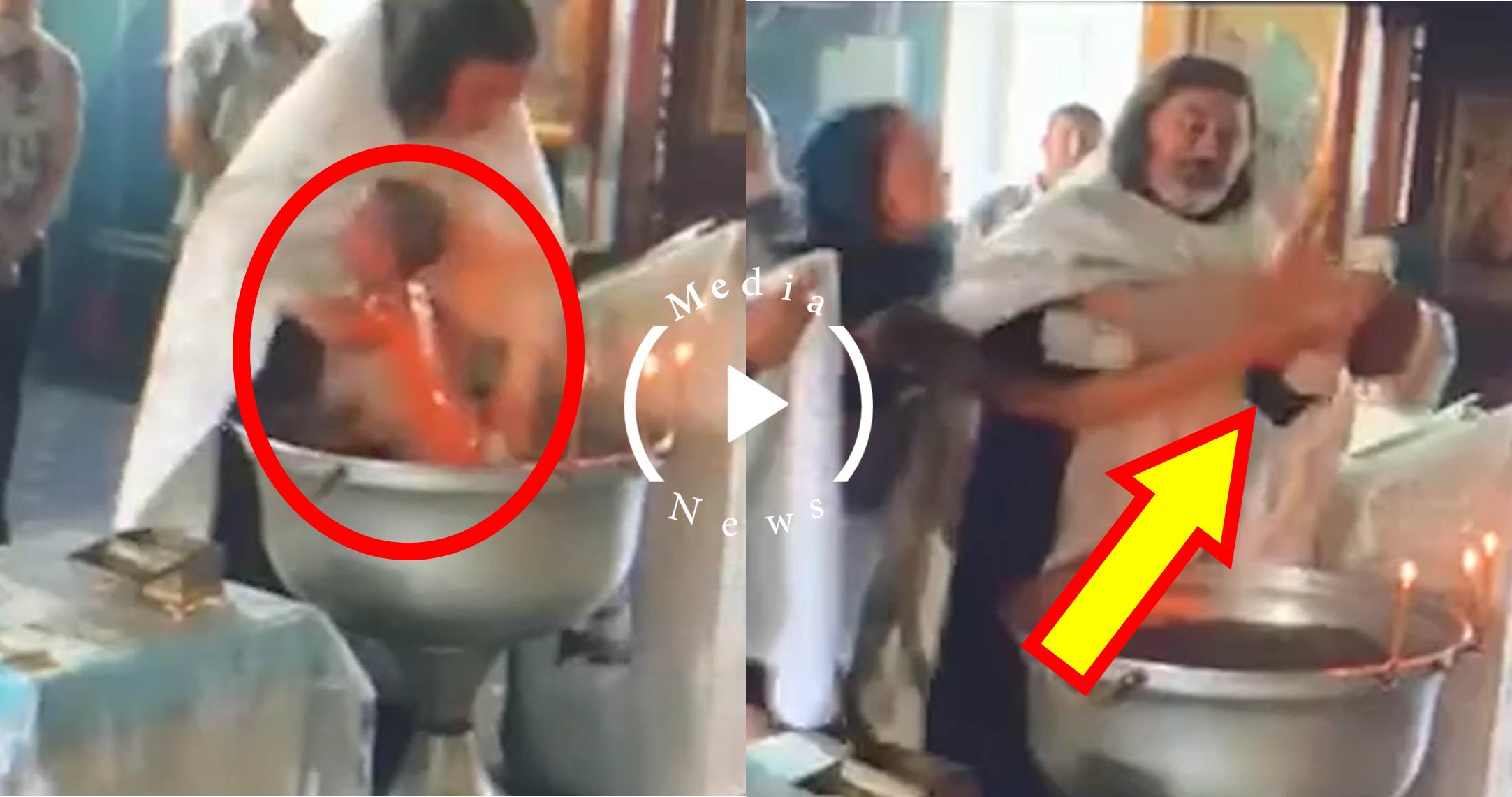 Տեսագրության մեջ երևում է, թե ինչպես է հոգևորականը գլխիվայր ընկղմում երեխային ջրի մեջ, չնայած որ նա արդեն բավականին մեծ է ավազանի համար: