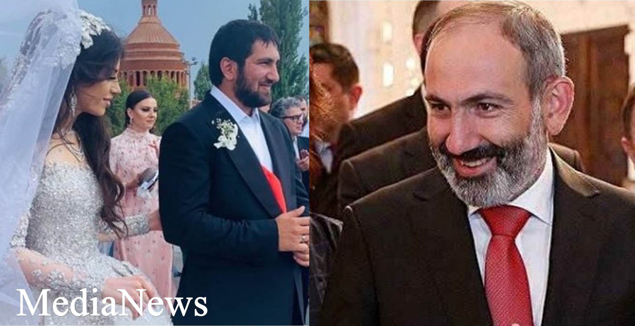 Մենք տեղեկացրել էինք որ Գագիկ Ծառուկյանի դստեր և Խաչատուր Սուքիասյանի որդու հարսանիքին ներկա է լինելու նաև Նիկոլ Փաշինյանը կնոջ հետ, բայց քանի որ Աննա Հակոբյանը մեկնել է Կանադա` Տորոնտոյում թավշյա հեղափոխության մասին «Ես Մենակ չեմ/ I Am Not Alone» ֆիլմի համաշխարհային պրեմիերային, Նիկոլ Փաշինյանը խնջույքին եկել է աղջիկների հետ: