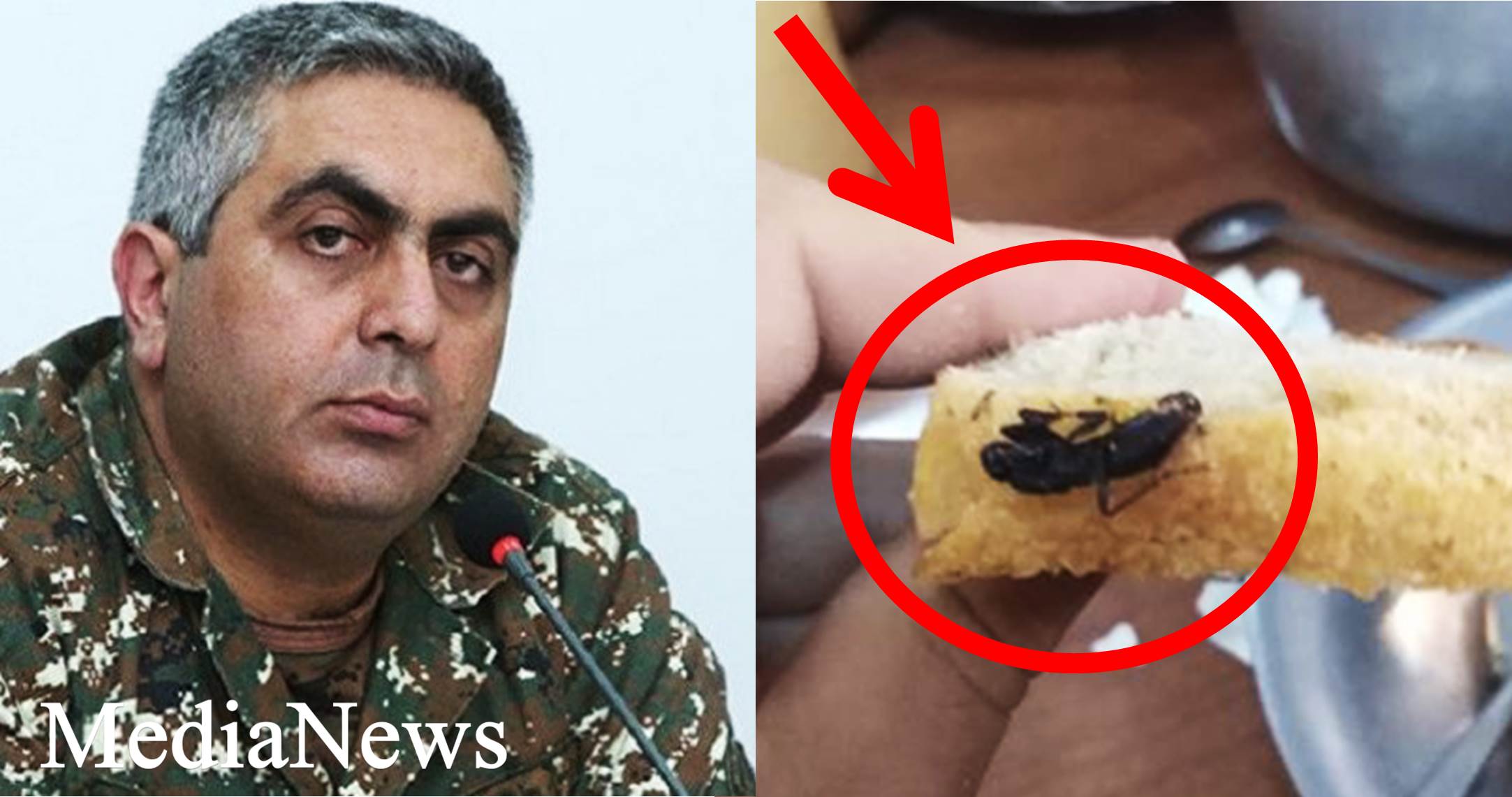 ՀՀ ՊՆ մամուլի խոսնակ Արծրուն Հովհաննիսյանը Ֆեյսբուքի իր էջում անդրադարձել է լրատվամիջոցներից մեկի հրապարակմանը, որում զինվորը դժգոհում է բանակային սննդից և նշում, որ կարտոֆիլի խյուսի մեջ միջատ են հայտնաբերել։