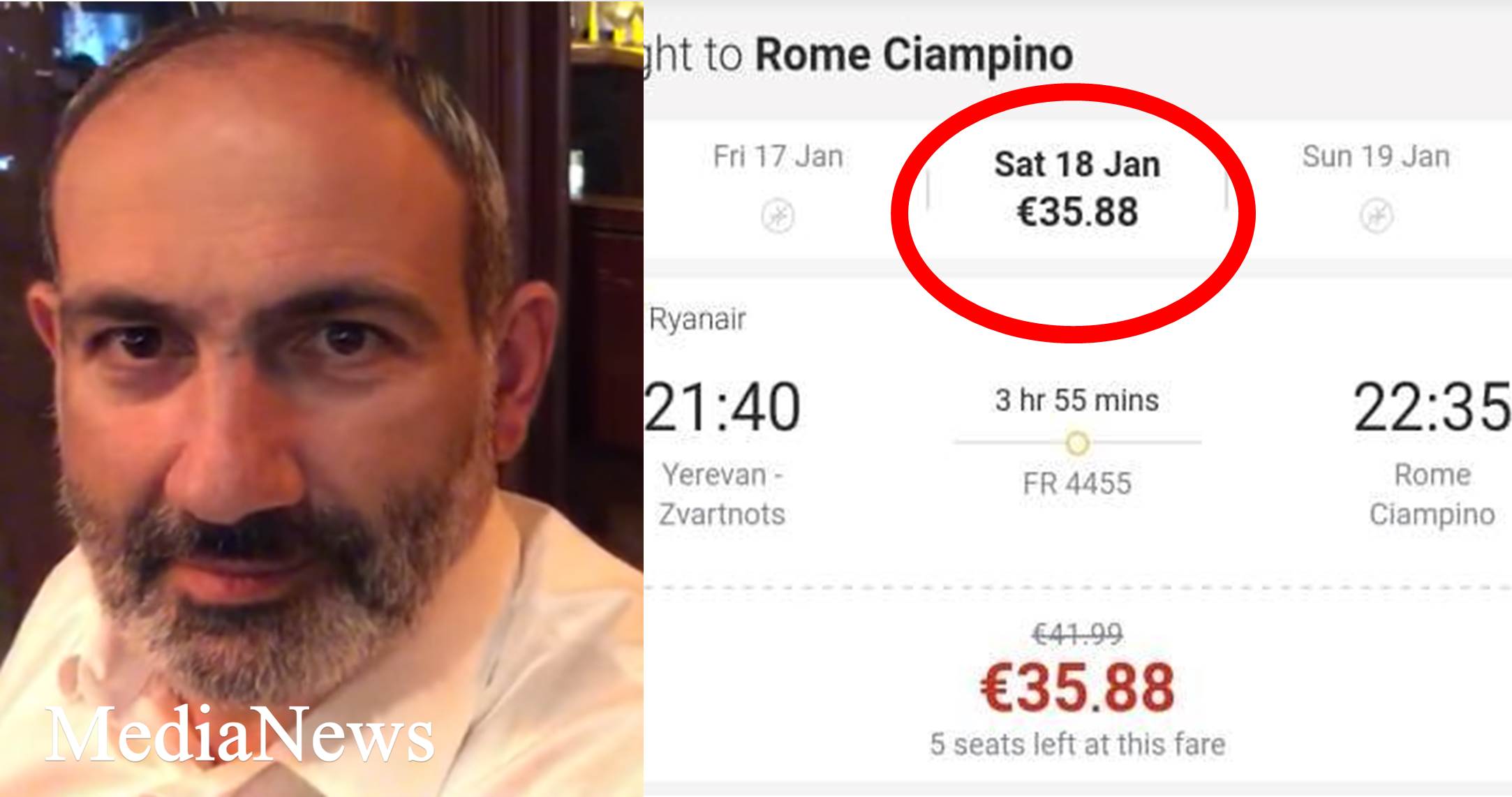 Վարչապետ Նիկոլ Փաշինյանն իր ֆեյսբուքյան էջում լուսանկար է հրապարակել «Ryanair» ընկերության գնացուցակից և գրել.