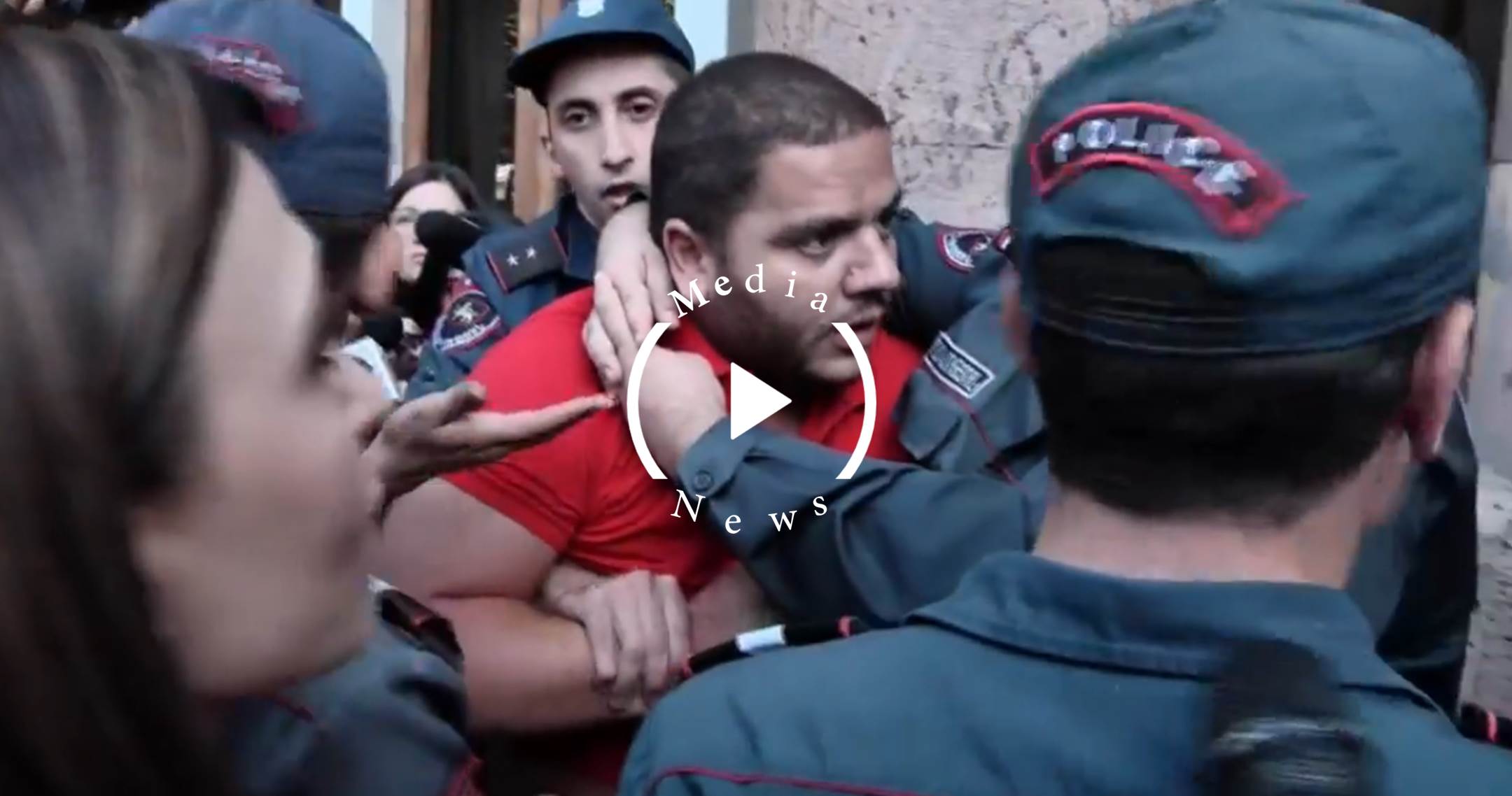 Ակցիայի ընթացքում բախում սկսվեց ոստիկանության ու քաղաքացիներից մեկի միջև, նրանք սկսեցին քաշքշել իրար: