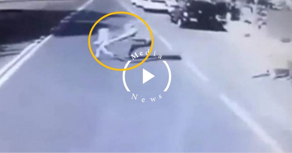 Տեսանյութում երևում է, թե ինչպես է երեխան փախչում մեքենայից և հայրը, տեսնելով ընթացող ավտոբուսը, վազում է որդու ետևից ու իր մարմնով ծածկում նրան: