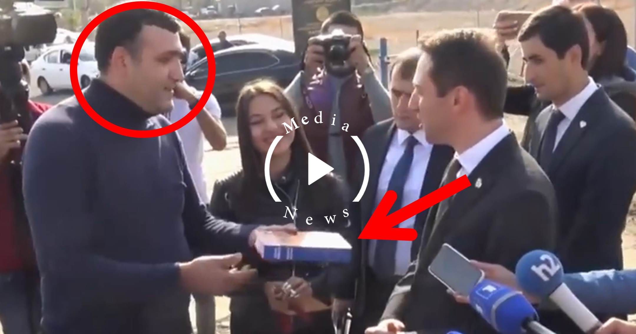 «Որոշեցիքն ձեզ գիրք նվիրել: Սա կլինի նաև գրքի լավագույն գովազդը, որովհետև դուք որպես հայտնի և սիրված դերասան, բազում գովազդներում եք նկարահանվել: Այս պահին նկարահանվեցիք այս գովազդում, ինչի համար շնորհակալ ենք ձեզ»,- ասաց Ռոբերտ Քոչարյանի աջակիցներից Նարեկ Մանթաշյանը՝ նվիրելով գիրքը: