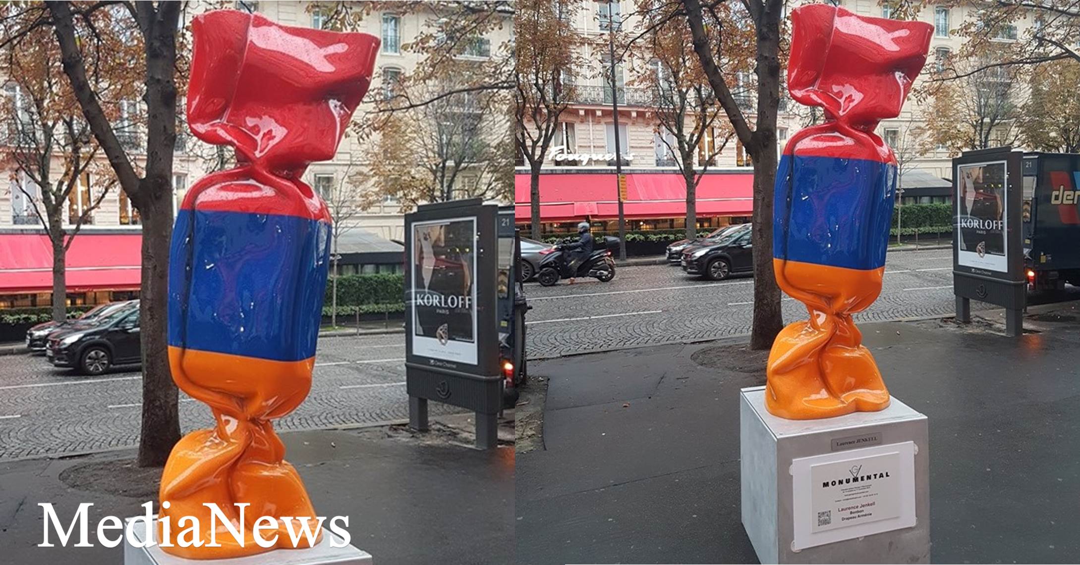 Հայաստանի դրոշի գույներով կոնֆետի քանդակը զարդարում է Փարիզի հայտնի պողոտան .